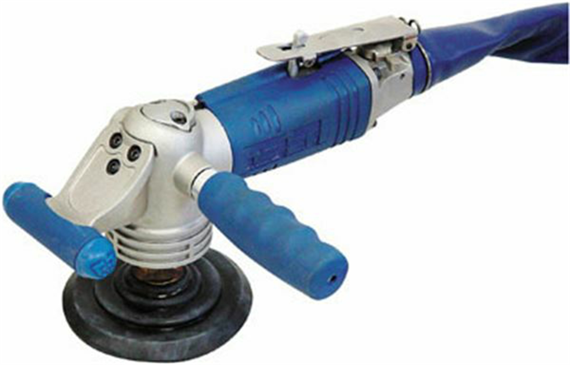 Handlicher Druckluft-Nass Winkelschleifer mit Druckluftrückführung, Ideal zur Oberflächenbearbeitung von allen Natursteinen. Für ein gutes Schleif-und Polierergebnis empfehen wir mit Diamant Schleifpads zu arbeiten.